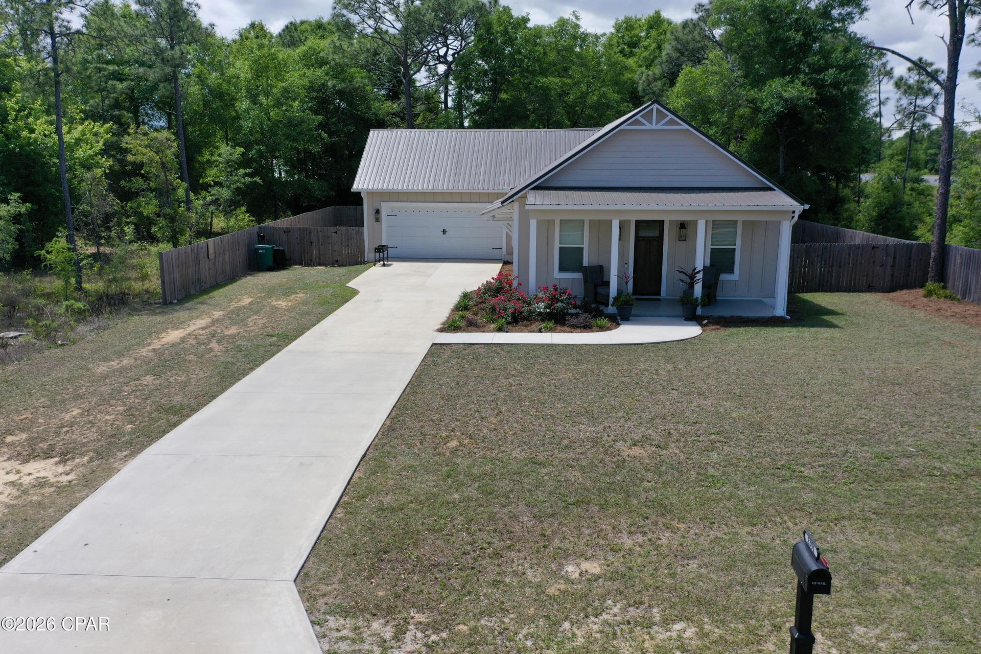 Custom 30A-style home in Sunny Hills with every detail thoughtfully designed. Features include Hardie board exterior, metal roof, decorative window awnings, 10' ceilings, and 8' interior doors. The kitchen offers high-end stainless LG appliances, smart refrigerator with craft ice maker, convection oven with air fry capability (ThinQ app compatible), vented hood, ceiling-height soft-close cabinetry, quartz countertops, and a large island with deep basin sink and seating. Interior highlights include LVP flooring, Bluetooth-enabled ceiling fans, smart thermostat, Levolor blinds, and a spacious walk-in pantry with all-wood shelving. The primary suite features a soaking tub, separate glass-enclosed shower, and elegant finishes. Additional features include a Rinnai propane tankless water heater, vinyl insulated windows, and an insulated 2-car garage. Spray foam insulation enhances energy efficiency, helping maintain comfortable temperatures year-round while keeping utility costs low. Exterior offers a fully landscaped, privacy-fenced backyard, gutter system with gutter shields, and a 50-amp RV hookup. Oversized parking area can accommodate large class A RV and or large boat. Conveniently located just off Hwy 77 for an easy commute, both Sunny Hills golf course and boat lake only a few miles up the road, approximately 45 minutes to the Gulf beaches and close to shopping, dining, and local attractions. If measurements deemed important, please verify.